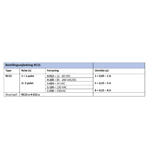 The RC15 series is a single AC current measuring relay, for AC signals, either directly or via a current transformer.