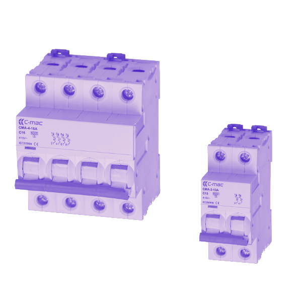 Automatsikringer 2-4 polet, 10/13/16A nominel strøm og type C karaktestik.