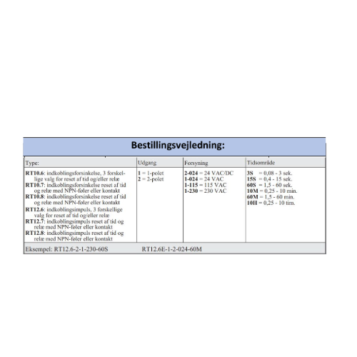 RT12.6 indkoblingsimpuls,3 forskellige valg for reset af tid og/eller relæ