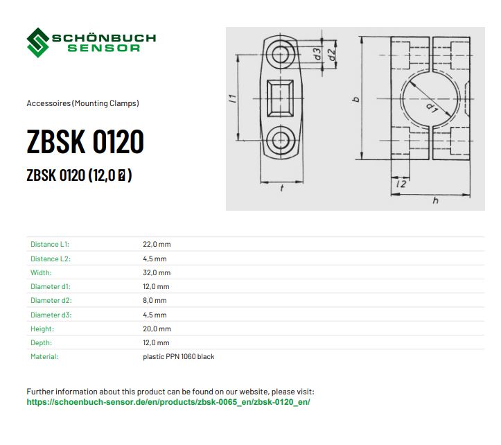 ZBSK 0120 – SCHÖNBUCH moterings beslag for M12 sensor/asftaster